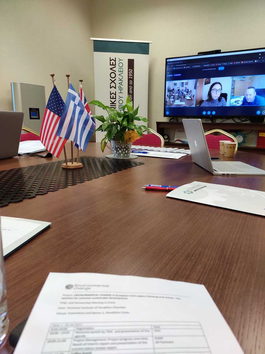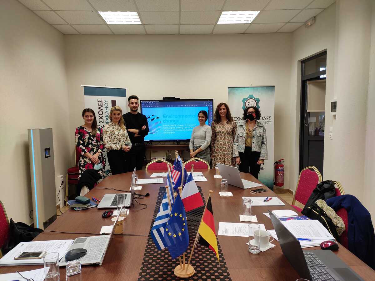 Drugie międzynarodowe spotkanie projektowe odbyło się w Heraklionie 26-27.10.2021 r. Podczas tego spotkania przedstawiciele Konsorcjum omówili finalizację programu środowiskowego (pierwszy rezultat projektu) oraz planowane działania dotyczące aplikacji środowiskowej dla startupów (drugi rezultat projektu). Partnerzy uzgodnili m.in. ostateczną strukturę sylabusa, poruszane tematy, – aby uniknąć powielania treści oraz dostosować treści do metod nauczania i uczenia się, sposoby oceny wiedzy i poziom ERK (europejskich ram kwalifikacji). Natomiast w zakresie wdrożenia cyfrowego uzgodniono, że program będzie dostępny w formie flipbooka (poza możliwością pobrania go w formacie PDF) oraz że aplikacja mobilna zostanie podzielona na trzy sekcje: samoocenę (pytania quizowe), pytania sytuacyjne (scenariusze) oraz strategie (zalecenia i uwagi). Następne bezpośrednie ponadnarodowe spotkanie partnerstwa planowane jest na maj 2022 r. Partnerzy będą również nadal organizować spotkania monitorujące online.