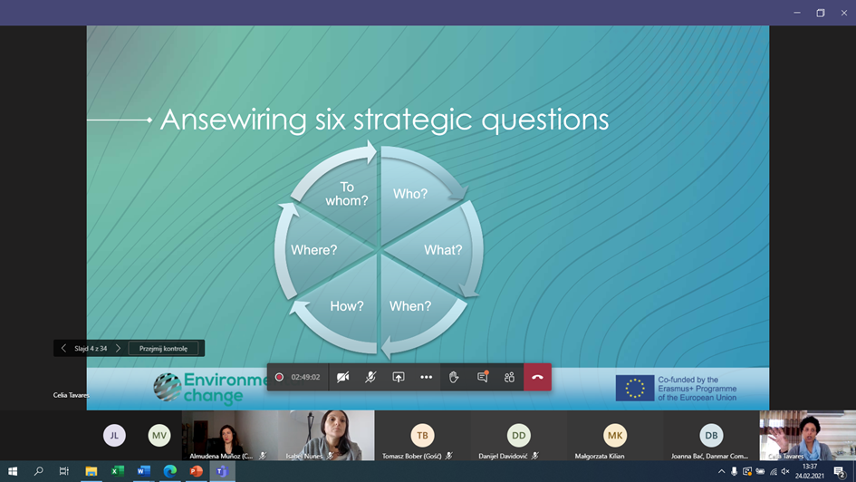 Zaradi globalne epidemiološke situacije koronavirusa je prvo projektno srečanje potekalo na spletu. Med srečanjem so predstavniki konzorcija obravnavali načrt upravljanja, načrt spremljanja in vrednotenja, načrt diseminacije in načrt zagotavljanja kakovosti ter načrt upravljanja tveganj. Predstavljeni so bili načini komunikacije med partnerji, vloge in odgovornosti ter prihodnje naloge. Konzorcij trenutno pripravlja okoljski program za ponudnike PIU.